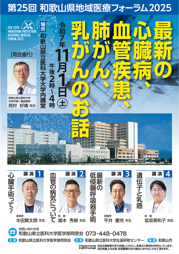 〒641-0012 和歌山市紀三井寺811-1 Tel/Fax 073-448-0478 和歌山県立医科大学図書館棟 3階 e-mail. waidaidousoukai@major.ocn.ne.jp